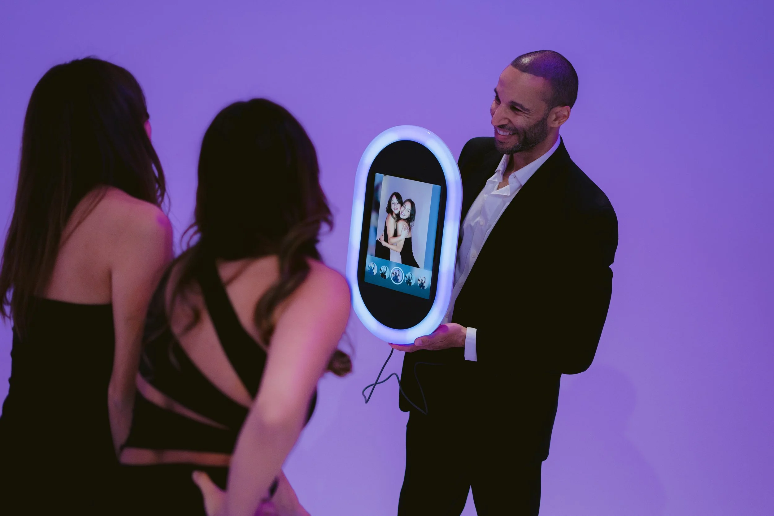 Our fully wireless photobooth offers complete flexibility — perfect for outdoor venues, rooftop events, or any space where a clean, minimal setup is desired. No cords, no clutter, and no hassle for your guests or staff. This sleek, modern design keeps the focus on the experience, allowing attendees to move freely and enjoy every moment while capturing memories seamlessly